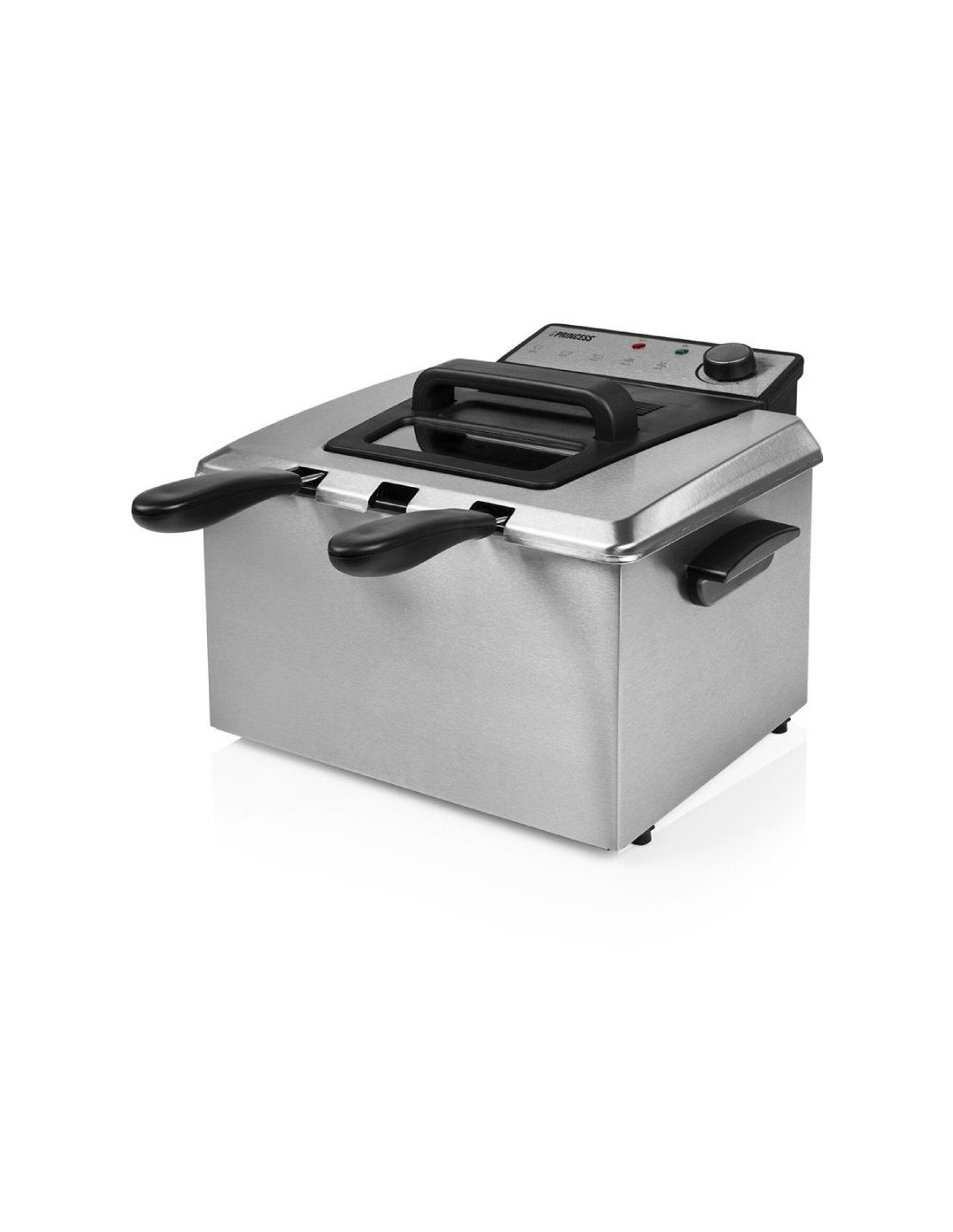 Sirva pescado y patatas a toda la familia con la freidora semiprofesional Princess 185000. Esta espaciosa freidora tiene un volumen de 5 litros para que puedan usarla incluso las familias más grandes. Junto con la freidora, recibirá tres cestas: una grande y dos medianas para freír al mismo tiempo patatas y aperitivos. El aceite se calienta en tan solo cinco minutos gracias a sus 3270 W de potencia.