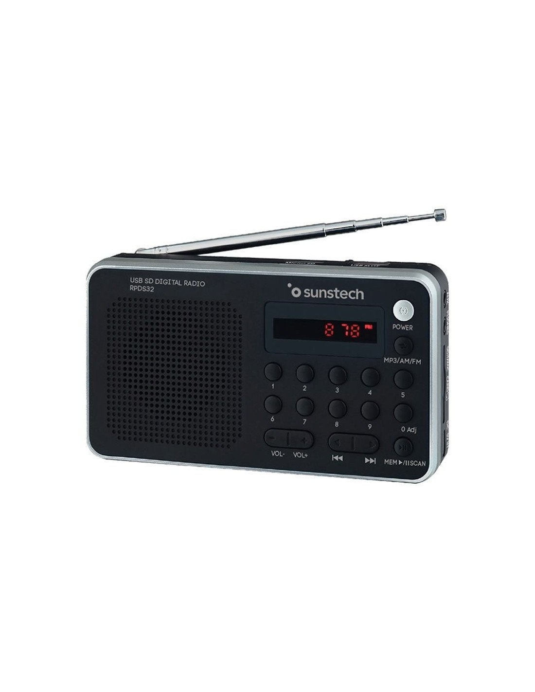 Radio portátil digital AM / FM súper compacta con puerto USB y ranura para tarjetas microSD / SD / MMC.