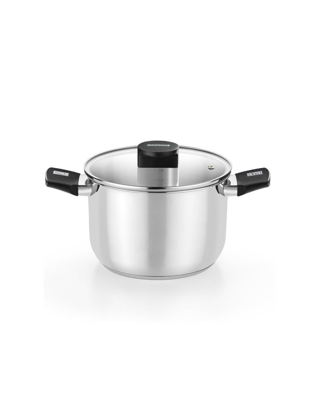 - Tapa de vidrio termoresistente con aro de acero inoxidable.