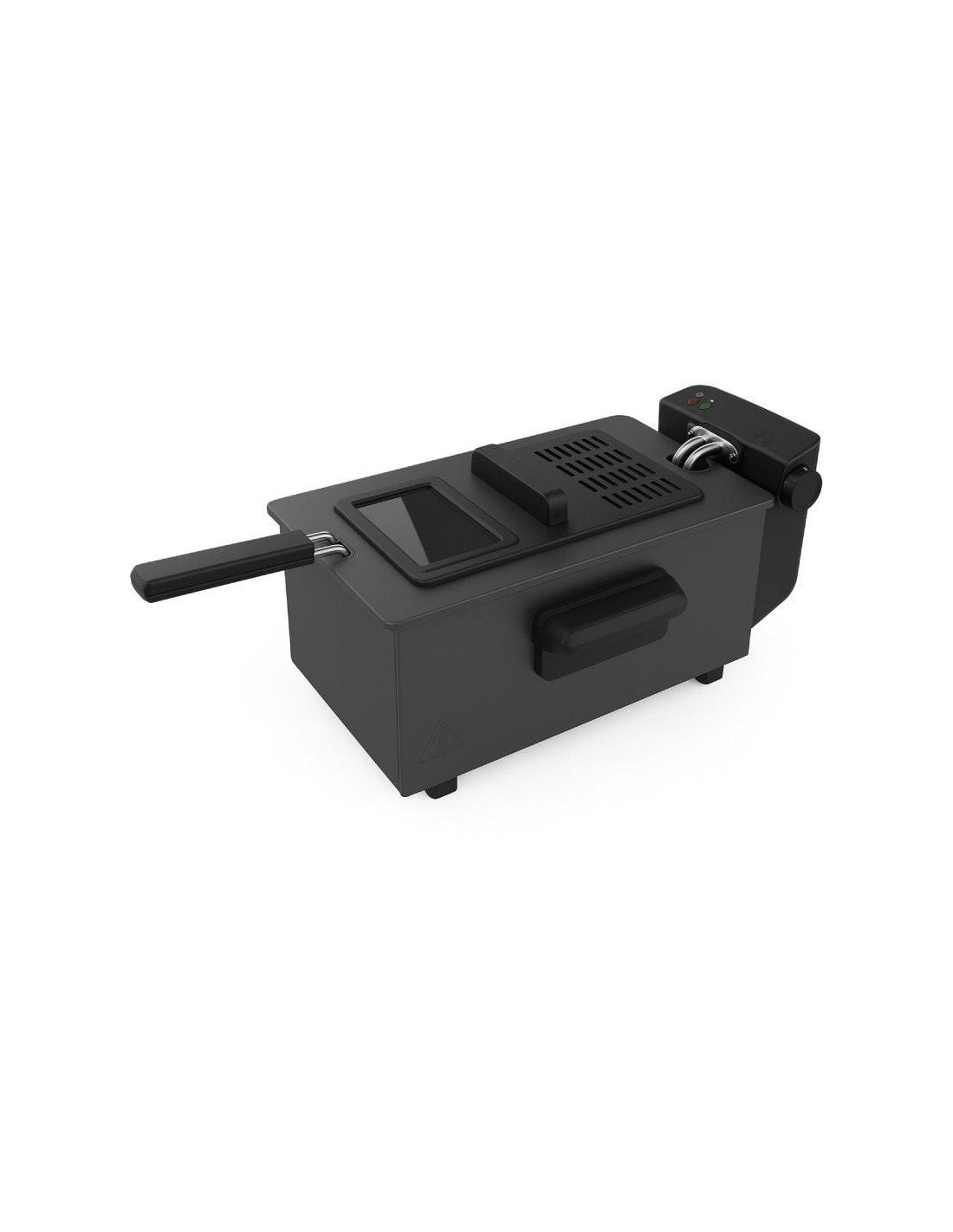 Freidora semiprofesional con un volumen de 3 litros. Termostato de precisión (regulable hasta 190C) con protección contra sobrecalentamiento, indicador y luz de encendido. La tapa está equipada con un práctico filtro y ventana de visualización.Especificaciones