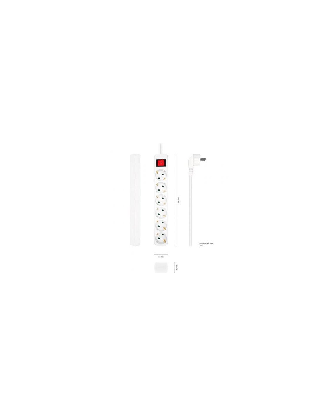 - Base multiple (Regleta de enchufes) 6 tomas con interruptor con cable 3x1.5mm2