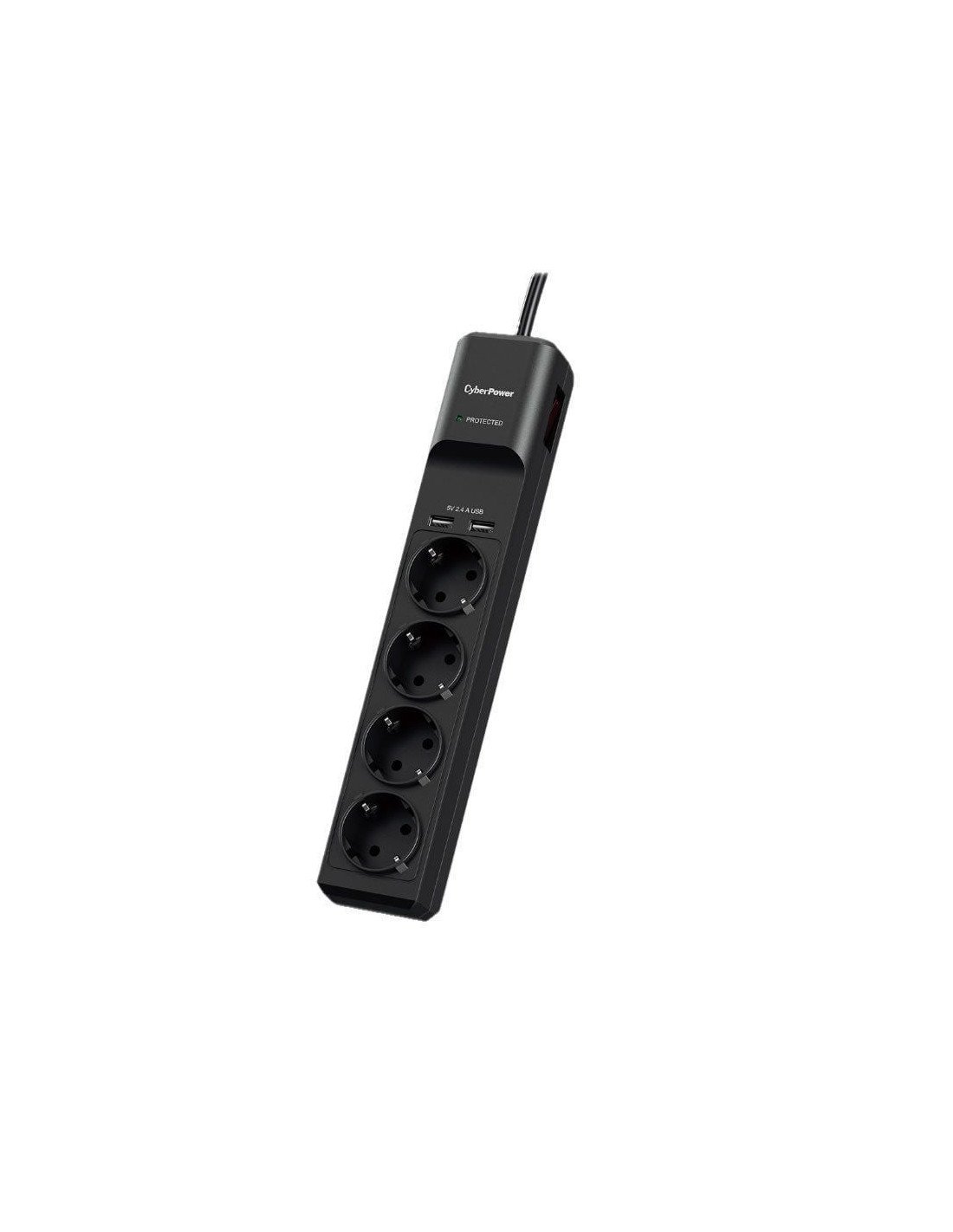 Regleta con interruptor cyberpower p0420sud0-de/ 4 tomas de corriente/ 2 usb/ cable 1.8m/ negra
