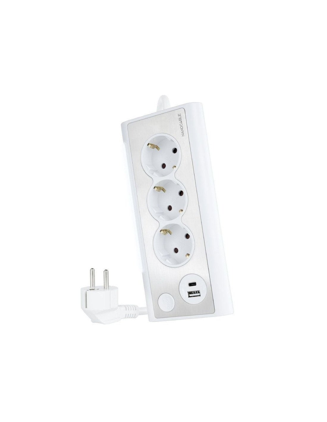 Regleta con interruptor nanocable 10.37.0013-w/ 3 tomas de corriente/ 1 usb/ 1 usb tipo-c/ cable 1.5m/ blanca